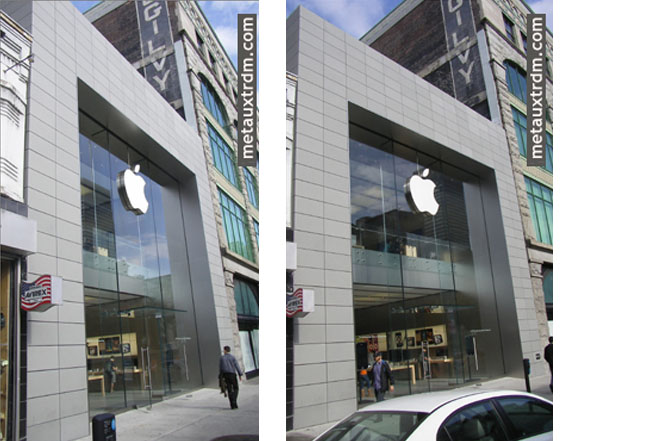 The Apple store, located in Downtown Montreal, selected Métaux TRDM to assist in the construction of their remarkable store façade. Métaux TRDM designed, fabricated and installed the galvanised steel structure required for installing the stone.
