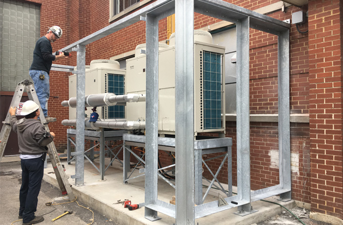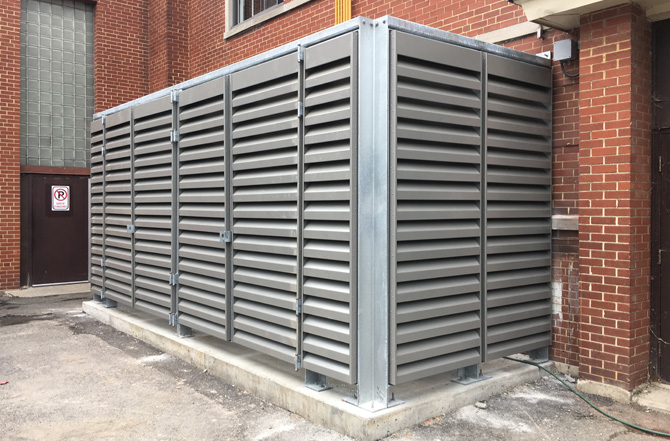 Aucun projet de métallurgie n'est trop petit pour les Métaux TRDM, comme le démontre la fabrication de cette structure métallique décorative réalisée pour l'École St-Clément à Montréal. Mesurant approximativement 8 pi. h. x 20 pi. l. x 5 pi. p, cette structure sert à camoufler, avec esthétique, les appareils de climatisation du bâtiment.